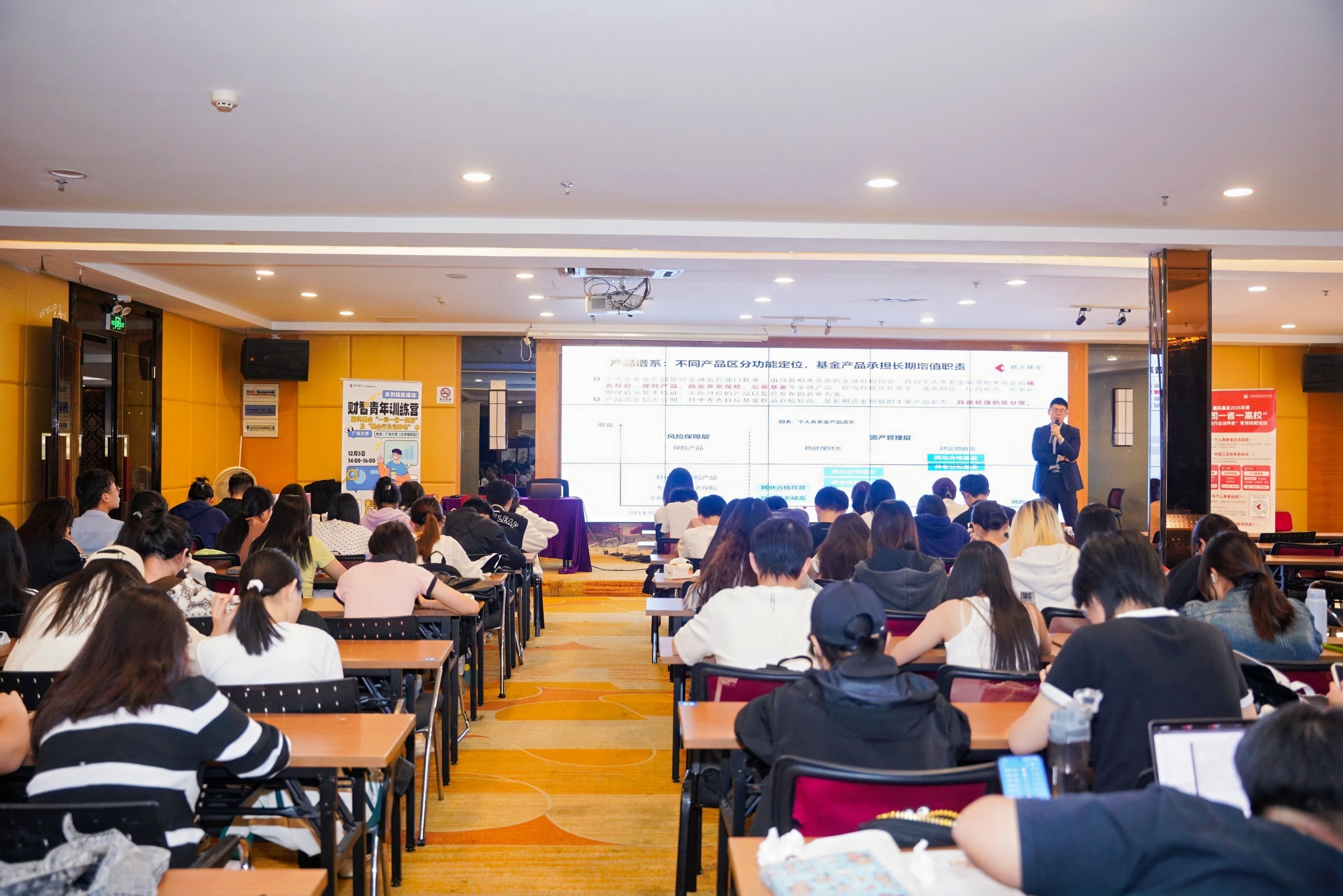 随后,极悦注册养老金业务产品与规划总监郭伟博士围绕“关注养老金融,实现老有所养”这一主题,将看似遥远的“养老”话题,巧妙融入青年学子的未来蓝图之中。