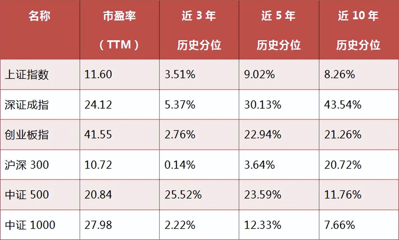以市盈率为例,若市盈率百分位为X%,则意味着当前市场的平均估值水平比历史上(100-X)%的时候都低。