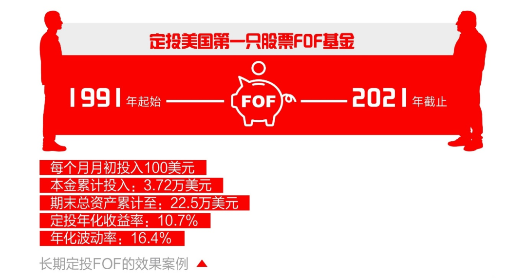 注:中长期的视角去看,个人养老投资的模式是将每个月收入的一部分投资到养老账户,所以养老基金实际上呈现给投资者的是净值曲线背后的定投收益。上述数据来自bloomberg,数据回测区间为1991.1.4-2021.12.31,基金历史业绩不预示未来,基金有风险,投资需谨慎。美国第一只股票FOF基金为普信光谱多元股票FOF,主要投资于代表特定细分市场的普信旗下国内和国际股票共同基金。