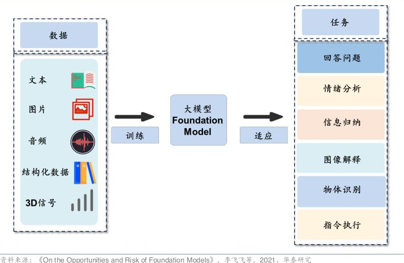 从通用到特殊,单一大模性具备丰富的垂直领域应用潜力。基于对底层能力的训练,AI大模型积累了对于数据背后特征和规则的理解,因此在进行垂直领域的时候,可以做到“举一反三”。