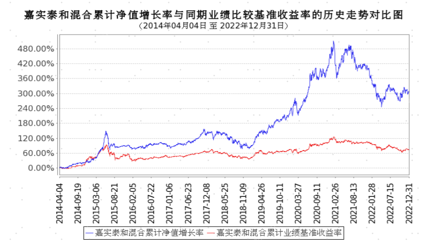 2014年4月4日是“基金泰和-嘉实泰和”的一个转折点,受彼时的市场需求和产品变革驱动,基金泰和变更运作形式,从封闭式基金变成开放式基金。自封转开至2022年12月30日,嘉实泰和累计收益307.48%,同期业绩基准为74.62%,超额回报突出。