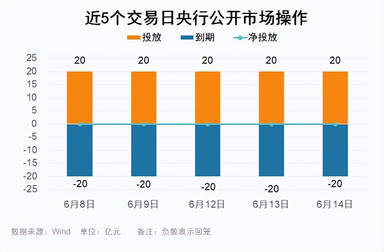 6月13日,央行开展20亿元7天逆回购操作,中标利率1.90%,较前日下降10个基点,为2022年8月以来首次调整。随后的两天,央行均采取了同样逆回购操作。