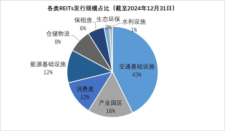基金管理人通过REITs可以动员更多的社会资本参与到清洁能源项目的投资和建设中,加速能源结构的优化和低碳技术的推广应用。截至2024年12月底,以清洁能源基础设施为底层项目的能源类基础设施共发行7只,发行规模达188亿,占总REITs发行规模的12%。
