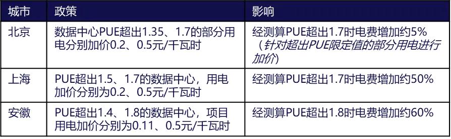 表:各地针对数据中心能效阶梯电价加价政策的影响