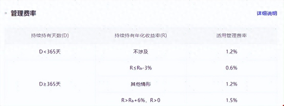 基准档:其他情况(即收益介于上述两者之间),管理费率仍为1.2%/年。